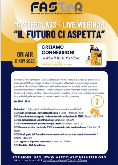 FASTeR – Federazione Associazioni Scientifiche TSRM presenta un ciclo di 4 eventi formativi gratuiti, pensati per affrontare i temi più attuali e strategici per i TSRM e i professionisti della sanità.