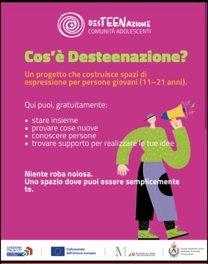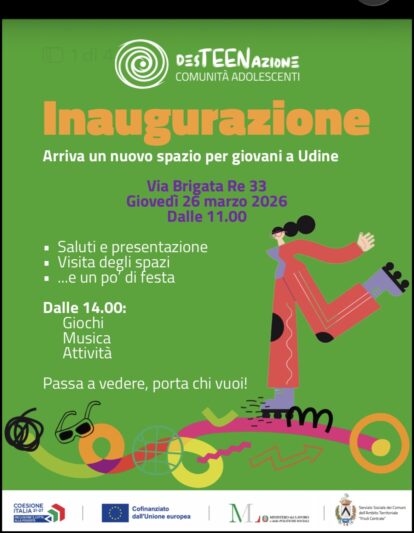 Giovedì 26 marzo – alle 11 verrà inaugurato in via Brigata Re 33, nella ex Casa del Comandante della Caserma Osoppo, il nuovo spazio del progetto “DesTEENAzione – Desideri in Azione”.